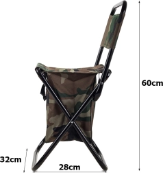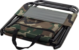 Dankzij de stevige stalen constructie en de slijtvaste stof in camouflagepatroon is de stoel klaar voor veelvuldig gebruik in de natuur. Het lage gewicht en de compacte afmetingen in opgevouwen toestand maken transport naar de waterkant, de camping, het bos of het strand eenvoudig.