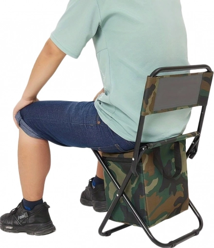 Geniet van comfort waar je ook bent. Deze opvouwbare stoel combineert de steun van een rugleuning met het gemak van een ruime rits-tas onder de zitting. Zo heb je alles bij de hand – van visuitrusting tot snacks en drankjes.