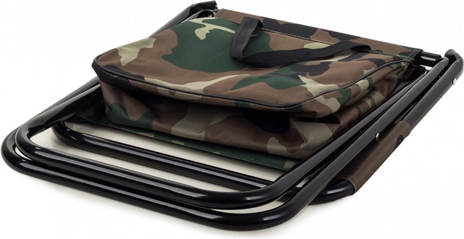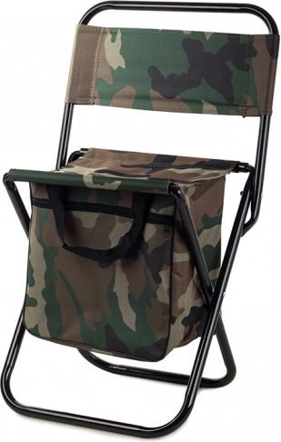 Lichte en compacte toeristenstoel in MORO-camouflage met een praktische rugleuning en een geïntegreerde tas onder de zitting. Biedt comfortabele zit tijdens het vissen, kamperen en op festivals, een stabiel stalen frame en gemakkelijk dragen dankzij handvat en schouderriemen.