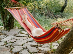 De montage is in een handomdraai gedaan – in de verpakking vind je twee bevestigingstouwen. Het gestreepte, levendige design past in elke tuin of op elk terras en neemt opgevouwen minimaal ruimte in. Ideaal om te lezen, even te dutten of zachtjes te schommelen na een drukke dag.