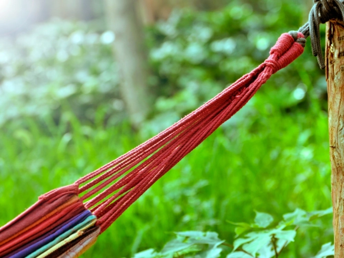 In de verpakking zitten 2 bevestigingskoorden voor snel ophangen tussen bomen of aan een standaard. Opgerold past de hangmat in een tas en neem je haar makkelijk mee op een uitje of naar de camping.