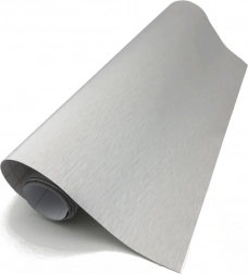 Transformeer het uiterlijk van uw auto, meubels of elk ander oppervlak met onze zelfklevende decoratieve folie. Deze grijze folie met geborstelde structuur zorgt voor een moderne en elegante look die uw objecten een nieuwe dimensie geeft. Ze is thermoplastisch en past zich gemakkelijk aan verschillende vormen en oppervlakken aan, wat creatieve en eenvoudige toepassing mogelijk maakt.
