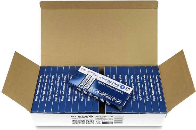 EverActive Pro Alkaline-batterijen zijn ontworpen voor hogere efficiëntie in apparaten met een hoog stroomverbruik. Ten opzichte van de eerste generatie Industrial Alkaline bieden ze tot 60% langere gebruiksduur.