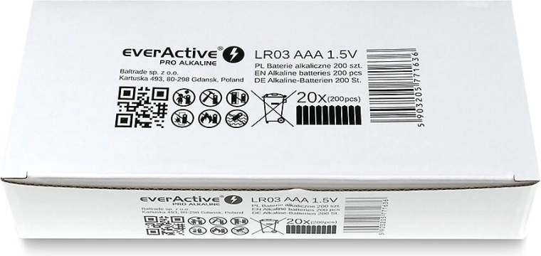 De serie EverActive Pro Alkaline is ontworpen voor maximale betrouwbaarheid en prestaties in speelgoed, afstandsbedieningen, zaklampen en draadloze sensoren. De verbeterde celconstructie zorgt voor hogere efficiëntie en langere werking, vooral in toepassingen met frequente piekstromen.