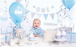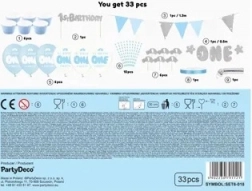 Deze veelzijdige set voor de eerste verjaardag creëert een perfect op elkaar afgestemde sfeer zonder langdurige planning. De blauwe en zilveren accenten ogen fris en feestelijk, zodat de decoratie zowel op foto’s als tijdens het feest prachtig uitkomt. Alles is praktisch verpakt in een doos; gewoon uitpakken en beginnen met versieren.