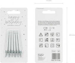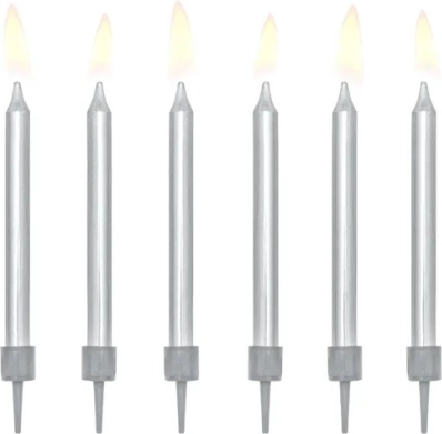 Vier in stijl met deze gemetalliseerde zilveren kaarsen, de ideale toevoeging voor elke taart. Hun elegante uitstraling en universele kleur passen bij elke decoratie en gelegenheid.