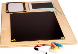 Dankzij het unieke dubbelzijdige ontwerp kunnen kinderen zowel de manipulatieve zijde als de schrijf- en tekenzijde gebruiken.