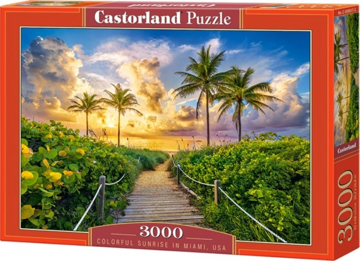 Ontdek deze prachtige puzzel met het motief Colorful Sunrise in MIAMI met 3000 stukjes, ideaal voor liefhebbers van uitdagingen en kwalitatieve ontspanning. Na het leggen heeft het beeld een afmeting van 92 × 68 cm en het valt op door de precieze afwerking, diepe kleuren en de hoge kwaliteit van de stukjes voor soepel puzzelplezier.