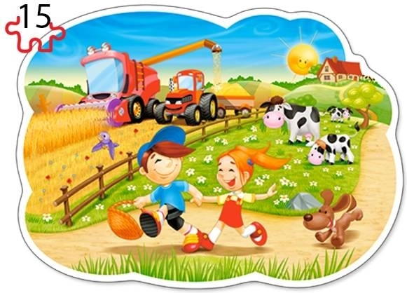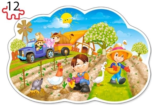 Kleurige illustraties met kinderen, dieren en activiteiten op de boerderij prikkelen de fantasie en houden de aandacht vast tijdens het puzzelen.