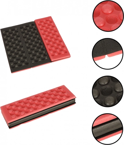 Geniet overal buiten van comfort. Dit opvouwbare foamkussen is ideaal voor wandelingen, kamperen, in het park en op het strand. Dankzij het geprofileerde oppervlak zit het prettig, dempt het oneffenheden en isoleert het uitstekend tegen koude en vochtige ondergrond.