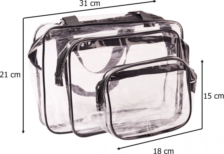 Praktische set van 3 transparante toilettassen van duurzaam, waterbestendig PVC maakt reizen en dagelijkse organisatie gemakkelijker. Verschillende maten, ritssluiting en eenvoudig schoon te maken zorgen voor orde in koffer, rugzak en badkamer. Het transparante materiaal versnelt de controle op de luchthaven en helpt je snel te vinden wat je nodig hebt.