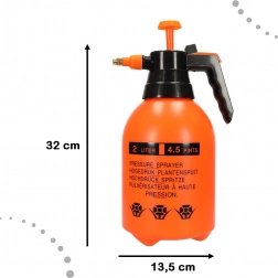 Deze compacte drukspuit is een ideale helper voor in de tuin, op het balkon en in de kas. Met de bovenpomp breng je de tank eenvoudig op druk en met een druk op de trekker vernevel je water of oplossingen van meststoffen en pesticiden gelijkmatig. De inhoud van 2 liter is de perfecte balans tussen laag gewicht en voldoende capaciteit voor comfortabel werken zonder vaak bij te vullen.