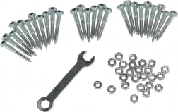 Stevige kunststof basis, metalen spikes en meegeleverde montagematerialen met sleutel voor snelle assemblage.