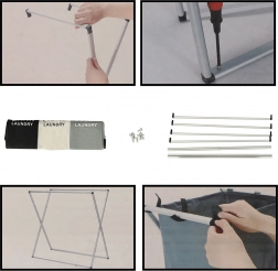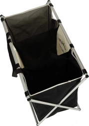 Het stabiele metalen onderstel en de duurzame Oxford 600D-stof garanderen een lange levensduur. De mand kan snel worden ingeklapt en dankzij de geïntegreerde handgrepen worden meegenomen; het verbinden van de delen is eenvoudig dankzij stevige klittenbandsluitingen.