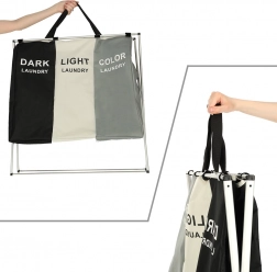 Geen langdurig uitzoeken van was meer voor het wassen. Deze ruime organizer biedt 3 aparte zakken met duidelijke markering voor eenvoudige oriëntatie. Het totale volume van 135 liter (3 × 45 l) is voldoende voor de was van het hele gezin, terwijl de compacte afmetingen van 65 × 36,5 × 58 cm ook in kleinere ruimtes passen.