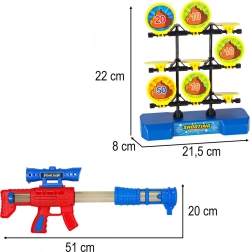 De set ontwikkelt fijne motoriek, oog-handcoördinatie en het plannen van de vluchtbaan. Dankzij de “kijker” voor beter richten leren kinderen snel nauwkeuriger schieten. Duurzame kunststof zorgt voor uren zorgeloos speel- en wedstrijplezier.