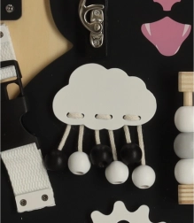Dankzij het aantrekkelijke ontwerp en de verscheidenheid aan geluiden houdt dit bord zelfs de meest afgeleide kinderen aandachtig. Ze leren veters strikken, gespen sluiten en sleutels gebruiken. Duurzame materialen garanderen een lange levensduur, zelfs bij veelvuldig gebruik.