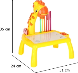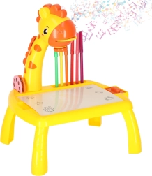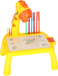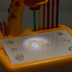 Ontdek een leuke manier om kinderen te leren tekenen! De gele giraffeprojector projecteert afbeeldingen op papier zodat kinderen ze kunnen overtrekken. Inclusief kleurstiften, drie verwisselbare schijven met motieven en een uitwisbare onderlegger. Geweldig hulpmiddel voor de ontwikkeling van creativiteit, fijne motoriek en precisie – ideaal voor kinderen vanaf 3 jaar.