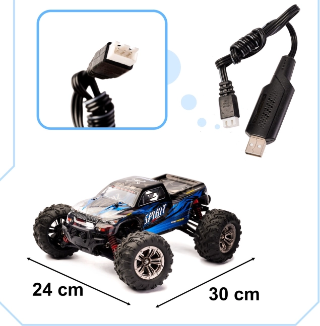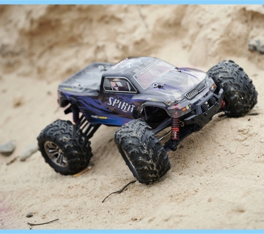 De grote AT-banden en effectieve vering zorgen voor uitstekende tractie op diverse ondergronden – van de woonkamer tot de tuin. De ergonomische pistoolzender met progressieve gas- en stuurregeling geeft je precieze controle in elke situatie. Dankzij de duurzame constructie is het model niet bang voor stoten of vallen.