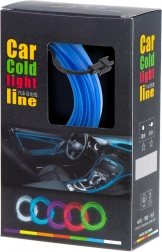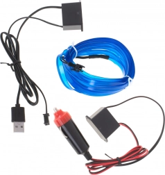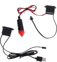 In de verpakking zitten twee voedingskabels – USB voor powerbank, pc of adapter en een 12V-adapter voor de autoaansluiting. De lengte van drie meter maakt het eenvoudig om langs panelen te geleiden, en indien nodig kun je de kabel inkorten tot de gewenste lengte.