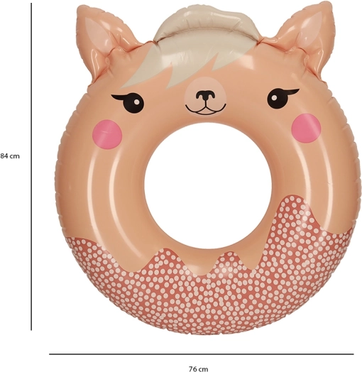 Het lama-design met een lief gezichtje en oortjes spreekt kinderen direct aan en geeft hen zelfvertrouwen in het water. De band heeft een diameter van 76 cm, is geschikt voor kinderen vanaf 8 jaar en draagt tot 40 kg, waardoor hij ook ideaal is voor oudere kinderen. Het duurzame vinyl is makkelijk te onderhouden en gaat vele seizoenen plezier mee.