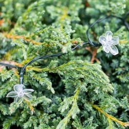 Transparante bloemetjes creëren zacht decoratief licht in levendige kleuren. Ze gaan perfect op in het groen en geven de ruimte een romantische sfeer.