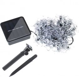 De decoratieve zonne-lichtslinger met transparante bloemetjes geeft je tuin elke nacht een betoverende sfeer. Het paneel verzamelt overdag zonne-energie en na het invallen van de duisternis gaan de lampjes automatisch aan. De donkergroene kabel verdwijnt in de begroeiing, waardoor alleen het effect van zacht gloeiende bloemen zichtbaar is.