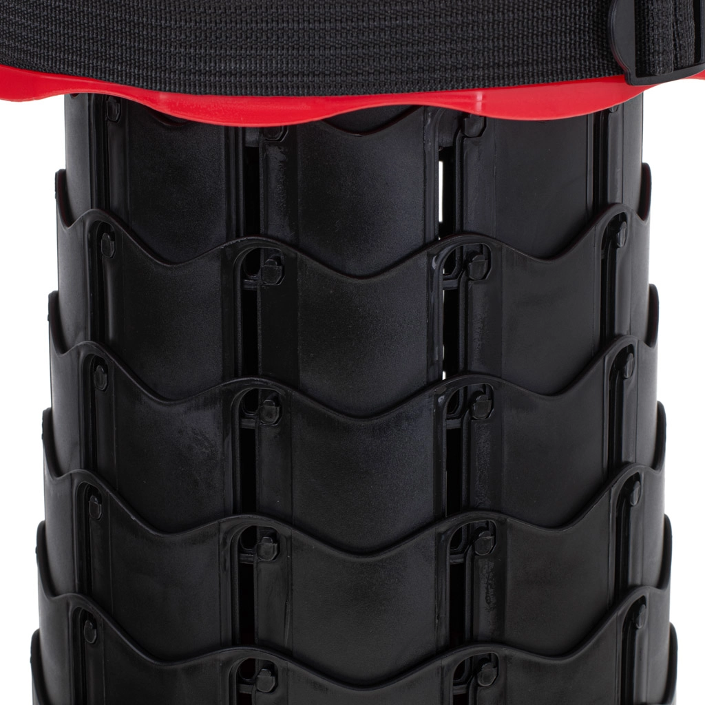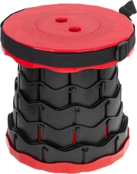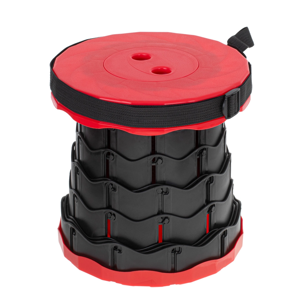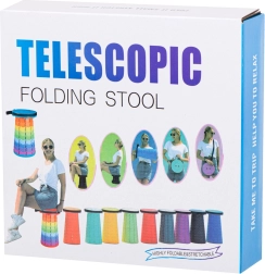 Deze telescopische kruk klapt in een oogwenk uit – pak het boven- en ondergedeelte vast, draai, schuif uit tot de gewenste hoogte en laat het mechanisme vergrendelen. De stevige kunststof constructie biedt stabiliteit en zitcomfort onder alle omstandigheden.
