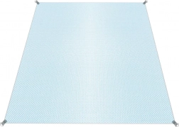 De mat is licht en kan eenvoudig in elke strandtas worden gepakt. Metalen ogen in de hoeken maken stevige bevestiging met ankerpennen mogelijk, zodat de mat zelfs op winderige dagen op zijn plaats blijft. Het is gemaakt van hoogwaardig polyester, wat een lange levensduur garandeert.