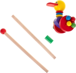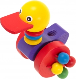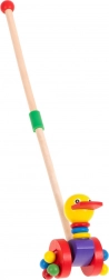 Deze kleurrijke houten eend is de ideale metgezel voor wandelingen. Het is ontworpen om kindermotoriek en beweging te ondersteunen. Dankzij de gemakkelijk te bedienen houten stok kan de eend worden voortgetrokken of kan ermee zelfstandig worden gespeeld.