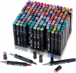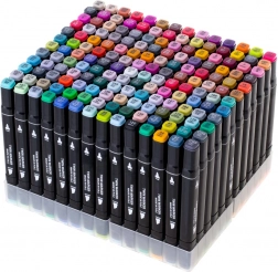 Deze complete set biedt een enorm spectrum aan tinten voor elke techniek. De alcoholinkt droogt snel, dekt prachtig en maakt vloeiende overgangen mogelijk zonder ongewenste strepen. Elke marker heeft 2 punten – een brede voor vlakken en een fijne voor lijnen en details.