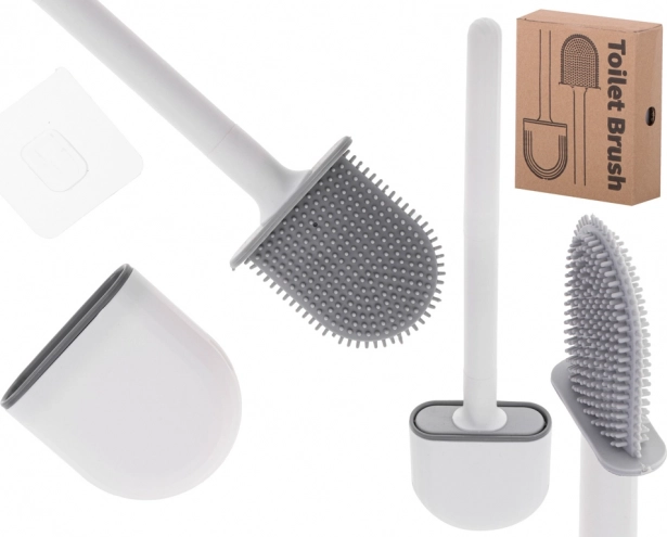 De verpakking bevat een zelfklevende haak voor het eenvoudig aan de muur bevestigen van de borstel – zonder boren en ruimtebesparend.