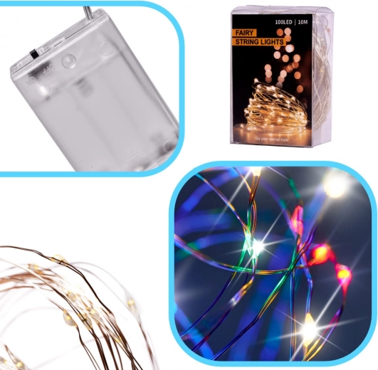 De lichte en soepele draad met 100 LED’s vorm je eenvoudig rond takken, lijsten of in potten. Het multicolor-effect zorgt voor een feestelijke sfeer, niet alleen met Kerst – de lichtjes werken ook als subtiele avondverlichting in de slaapkamer of woonkamer.