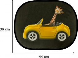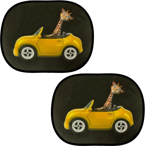 Praktische set van twee zonneschermen voor de zijruiten zorgt voor veiliger en comfortabeler rijden op warme dagen. De halftransparante zwarte mesh met giraffeprint beperkt effectief de doorgang van zonnestralen en helpt de opwarming van het interieur te verminderen.