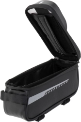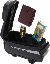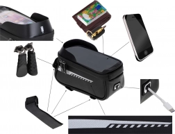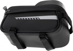 De compacte afmetingen zijn niet hinderlijk tijdens het rijden. De zak is afsluitbaar met een rits, wat ervoor zorgt dat er niets uitvalt, zelfs niet in scherpe bochten. De montage van de tas is verzekerd door drie klittenbanden: één voor het stuur en twee voor het frame, wat perfecte stabiliteit tijdens het rijden garandeert. Past op elk model fiets, ongeacht het merk.