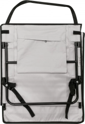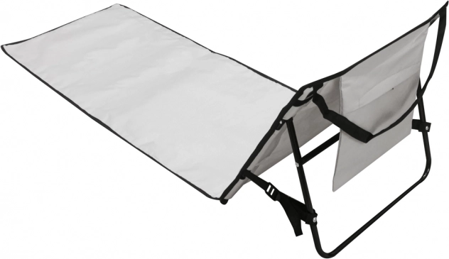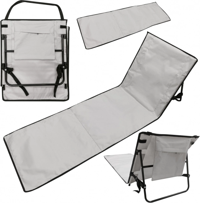 Dit ligbed heeft een stevige metalen constructie en waterbestendige stof, waardoor het verschillende seizoenen overleeft. Het is uitgerust met een handige tas die aan de rugleuning is bevestigd, waar u uw telefoon of sleutels kunt opbergen. Opgevouwen neemt het weinig ruimte in beslag en dankzij de handgreep is het vervoer een fluitje van een cent.