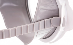 Zacht siliconen in combinatie met kunststof zorgt voor een aangename aansluiting op het gezicht en beperkt het binnenlopen van water bij ogen en neus.