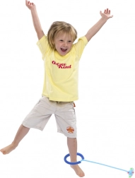 Het spel is intuïtief: schuif de ring om je enkel, geef hem een zwieper en spring met de andere voet over het koord met het balletje. Een toffe uitdaging voor kinderen én volwassenen – wie maakt de meeste omwentelingen of laat hem het snelst draaien?
