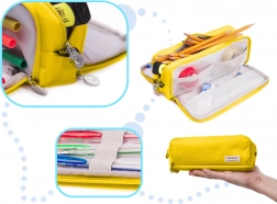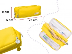 Geen chaos meer in je tas. Deze multifunctionele etui met 3 afzonderlijke vakken met rits biedt ruimte aan potloden, pennen, markeerstiften, een liniaal en kleine accessoires. Dankzij de interne zakken en elastische bandjes heb je alles bij de hand en perfect geordend. Werkt ook uitstekend als make-uptasje of reisorganizer.