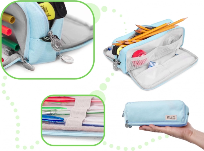 Dit universele etui is ideaal voor school, universiteit en kantoor. Het biedt 3 gescheiden ritsvakken, en in de zijdelen vind je bovendien kleine vakjes en elastische bandjes voor het vastzetten van kleine benodigdheden. Het moderne design spreekt zowel kinderen als volwassenen aan.