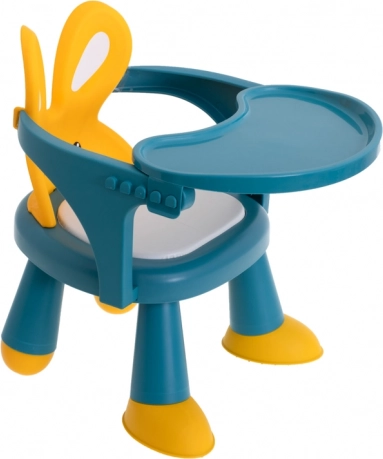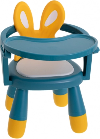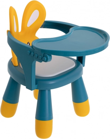 De kleurrijke uitvoering en de rugleuning met konijnenoortjes ondersteunen een juiste zithouding en maken van elke maaltijd en elk spelmoment een plezier.