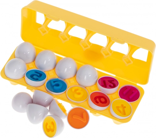 De educatieve speelgoedset in de vorm van eieren biedt uren plezier voor kinderen en leert hen vormen en kleuren herkennen. De set bevat 12 eieren die halfjes op basis van vorm en kleur correct aan elkaar moeten worden gekoppeld. Deze puzzel ondersteunt niet alleen het logisch denken en de creativiteit, maar helpt ook de fijne motoriek van de kleintjes te ontwikkelen.