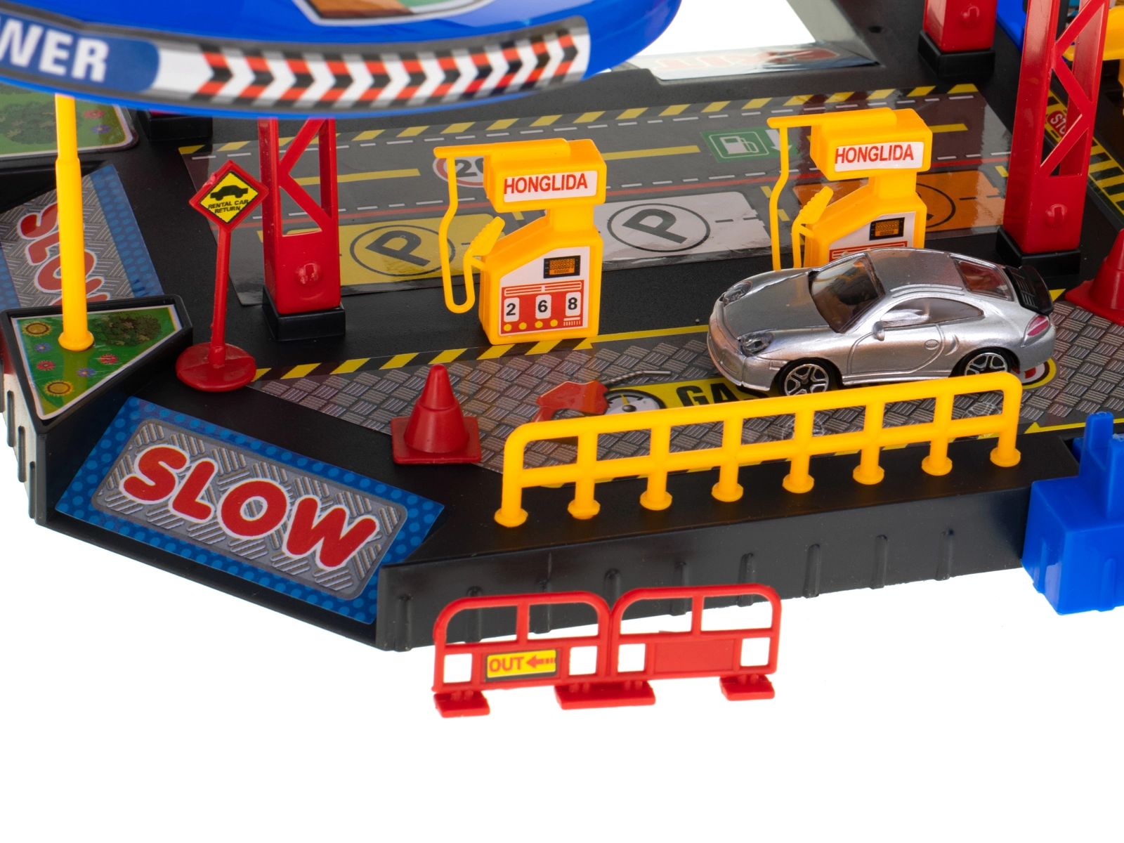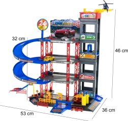 De parkeergarage met verdiepingen is uitgerust met meerdere niveaus om te parkeren en te spelen, waardoor niet alleen de autootjes uit de set, maar ook andere voertuigen van uw kind kunnen worden geplaatst en opgeborgen. De handmatig bediende lift biedt een realistische ervaring, terwijl het benzinestation en de wasstraat extra interactieve mogelijkheden toevoegen.