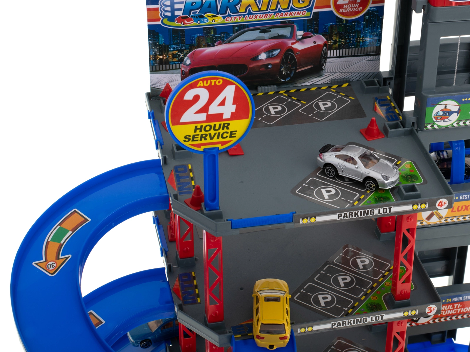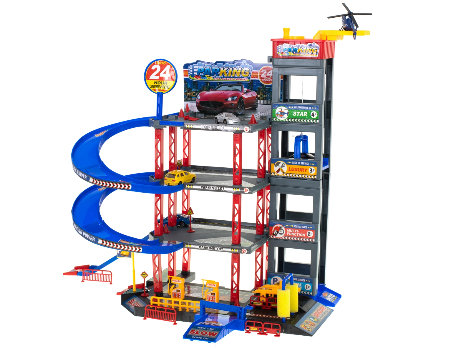 Met meerdere parkeerniveaus en speelmogelijkheden voor zowel autootjes als een helikopter biedt de parkeergarage eindeloos vermaak en stimuleert zij de kinderlijke fantasie.