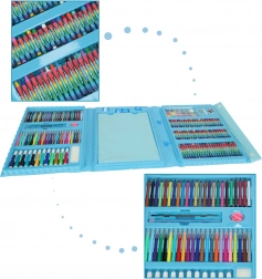 De praktische indeling zorgt ervoor dat elk onderdeel zijn eigen plek heeft. Duurzame stiften drogen niet snel uit, oliepastels en waskrijtjes hebben een intens pigment en de kleurpotloden glijden soepel over het papier. Het koffertje klap je gemakkelijk in, sluit je af en neem je mee naar club, school of op reis.