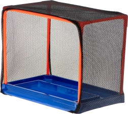 Stevig net met oranje frame vangt foam darts en balletjes op. Speel veilig binnenshuis en houd alles moeiteloos netjes.