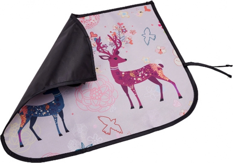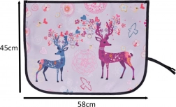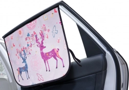 Dit dubbel-laagse magnetische gordijntje voor het zijraam van de auto biedt directe verlichting van fel zonlicht en warmte. Aan de ene kant staat een kleurrijk motief met herten, aan de andere kant een contrasterende tekst “Go out and enjoy the sunshine” op een zwarte achtergrond. Dankzij de hoogwaardige polyester is het scherm duurzaam, gemakkelijk schoon te maken en zorgt het voor volledige verduistering.