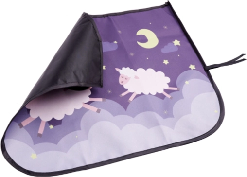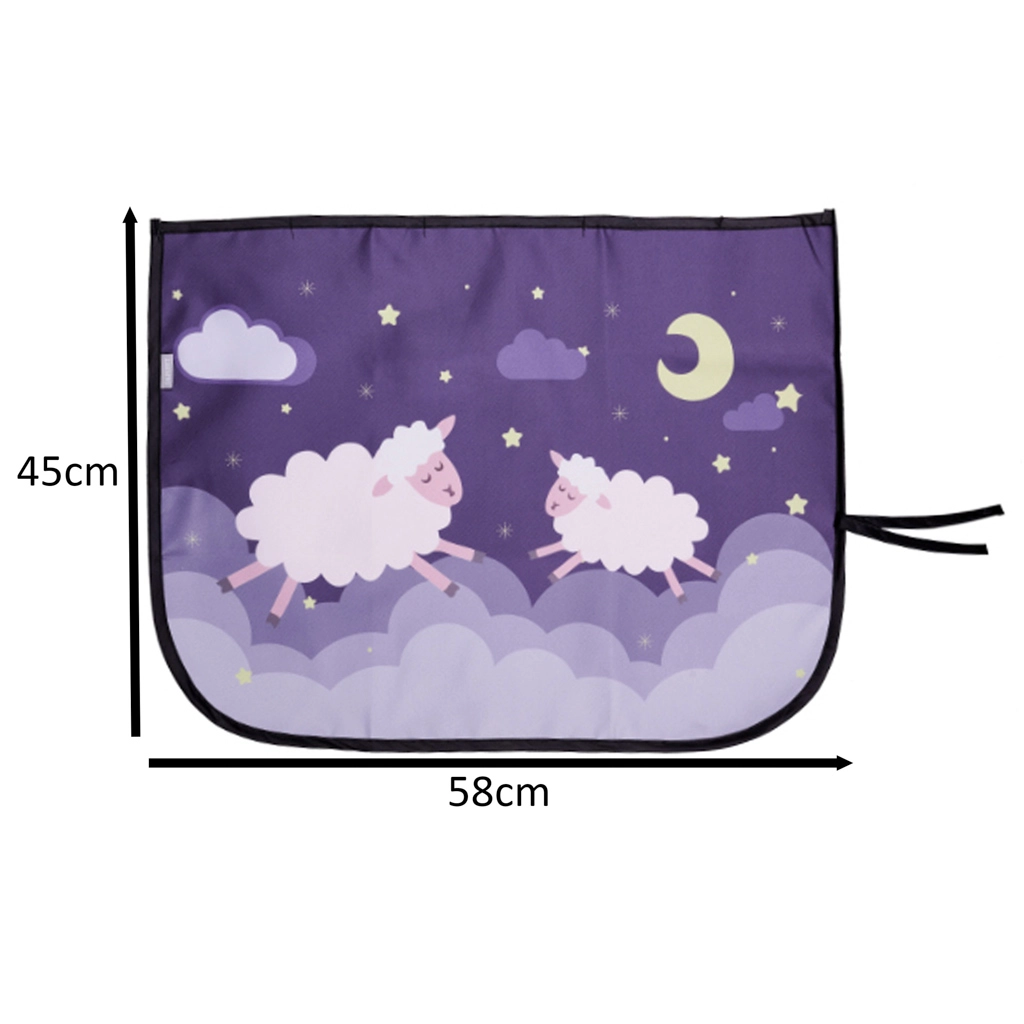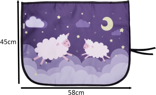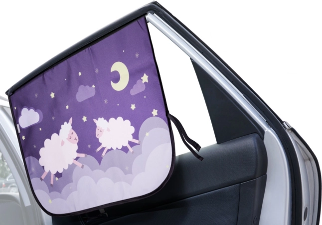 Rustgevend nachtelijk design met schaapjes, maan en sterren zorgt voor een prettige sfeer in de auto en spreekt kinderen aan.