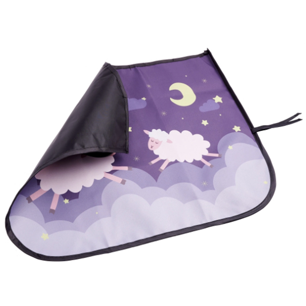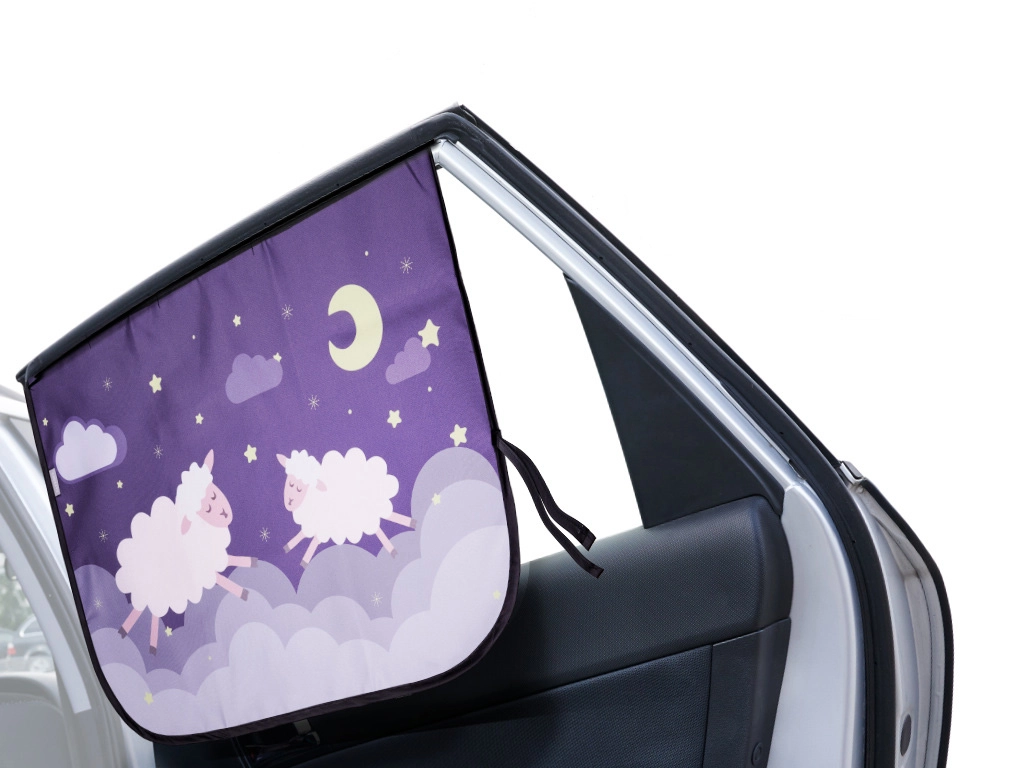 Praktisch magnetisch zonnescherm voor het zijraam van de auto dat effectieve verduistering biedt, bescherming tegen zonlicht en UV en een comfortabele en veilige rit garandeert voor zowel kinderen als volwassenen. Tweelaags materiaal met een schattig schapenmotief en eenvoudige installatie met 5 magneten zonder lijm.