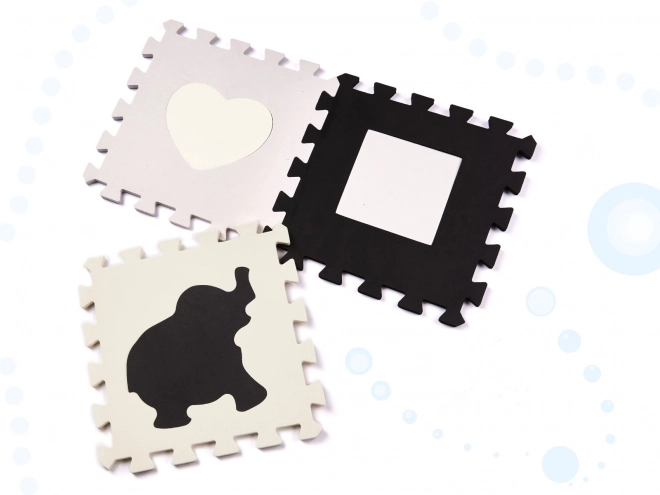 Deze grote schuimen puzzelmat met uitneembare elementen in contrasterende kleuren is ideaal voor jonge kinderen die de wereld van vormen en kleuren ontdekken.